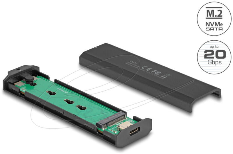 Delock Külső USB Type-C 20 Gbps kombinált ház M. 2 NVMe PCIe vagy SATA SSD eszközhöz - szerszám mentes (42031)