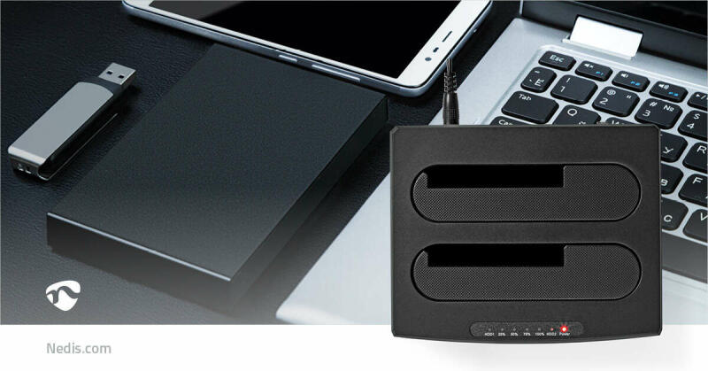 Ez a Nedis kétrekeszes SATA merevlemez-dokkolóállomás lehetővé teszi az asztali gép vagy laptop merevlemezeinek elérését anélkül, hogy bosszúságot okozna a merevlemezházak összeszerelése. Ha közvetlenül helyez 2,5/3,5 hüvelykes SATA merevlemezeket vagy SSD-ket ebbe a dokkolóállomásba, gyorsan hozzáférhet a meghajtó tartalmához és átviheti a fájlokat. Ráadásul a plug and play csatlakoztatással könnyedén kicserélheti a merevlemezeket.